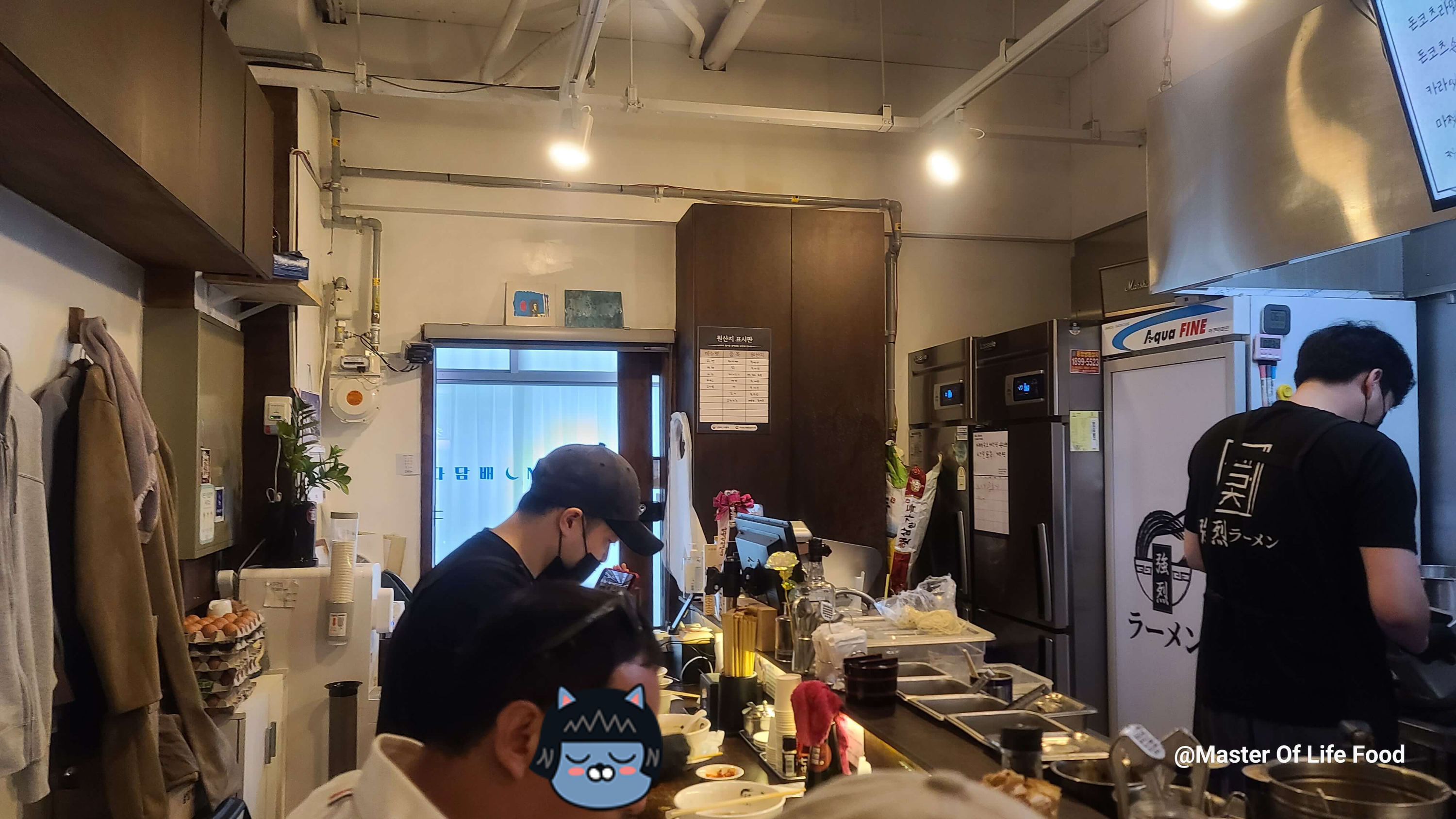 신도림 교레츠라면의 유래는 2016년으로 거슬러 올라갑니다. 부평에서 라멘 가게를 운영하던 이민규 대표가 신도림에 분점을 내기 위해 준비하던 중, 일본 라멘의 맛을 그대로 재현하면서도 한국인의 입맛에 맞는 라멘을 만들고 싶은 생각을 하게 되었습니다. 이 대표는 일본에서 라멘을 공부한 경험을 바탕으로, 1년여의 연구와 개발 끝에 한국식 라멘의 새로운 기준을 제시하는 라멘을 완성했습니다. 그 결과 탄생한 것이 바로 신도림 교레츠라면입니다. 신도림 교레츠라면의 가장 큰 특징은 깊고 진한 돈코츠 육수입니다. 이 대표는 매일 새벽 도축장에서 공수한 돼지뼈를 14시간 이상 우려내어, 깊은 풍미와 감칠맛을 자랑하는 육수를 만들었습니다. 여기에 간장과 마늘, 생강 등 다양한 양념을 더해 한국인의 입맛에 맞는 라멘을 완성했습니다. 신도림 교레츠라면은 2017년 3월에 오픈한 이후, 꾸준한 인기를 얻으며 신도림의 대표적인 라멘 맛집으로 자리 잡았습니다. 특히, 라멘에 곁들여 먹는 마늘과 김치가 별미로 꼽히며 많은 고객들에게 사랑받고 있습니다. 신도림 교레츠라면의 유래는 한국식 라멘의 새로운 기준을 제시한 라멘의 탄생 과정이라고 할 수 있습니다. 이 대표의 끊임없는 연구와 노력으로 탄생한 신도림 교레츠라면은 한국 라멘의 새로운 가능성을 보여준 라멘으로 평가받고 있습니다. 내부는 10명 정도 앉을 수 있는 자리도 돼있고 음식 하는 모습을 앞에서 볼 수 있습니다. 아파트 상가에 위치하다 보니 그리 넓지는 않습니다. 입구의 키오스크에서 주문을 하고 면 익힘의 정도를 말씀드리면 그렇게 해줍니다.